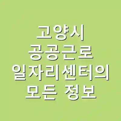 고양시 공공근로 일자리센터 문의 전화 및 추가 정보