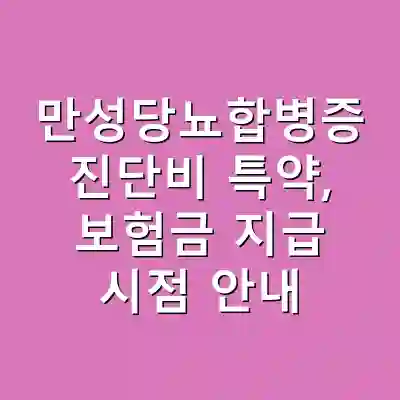 만성당뇨합병증 진단비 특약은 당뇨병 관리의 중요성에 따른 보험 상품입니다. 건강검진에서 당뇨 전단계 진단을 받은 경우, 평소의 건강 관리와 더불어 합병증 예방이 필수적입니다. 이 특약은 특정 기준을 충족할 시 보험금 지급이 가능하므로, 언제 보험금을 받을 수 있는지에 대한 명확한 이해가 필요합니다. 이 글을 통해 만성당뇨합병증 진단비 특약의 구성, 지급 조건 및 실효성에 대해 알아보겠습니다.