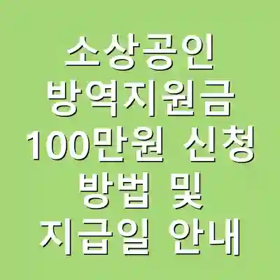 소상공인 방역지원금은 100만원으로, 소상공인에게 직접 지원되는 금액입니다. 신청은 온라인으로 가능하며, 지급일 및 조건을 잘 체크하여 문제 없이 수령하시기 바랍니다.