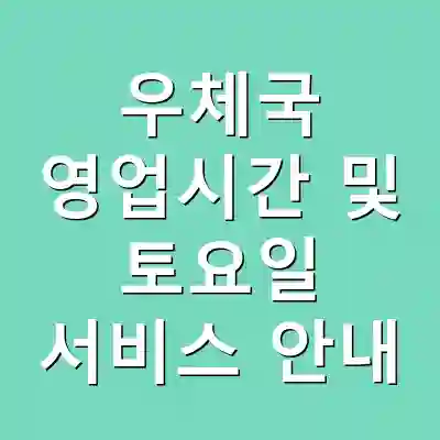 우체국의 다양한 서비스와 영업시간에 대해 알아보았습니다. 특히, 토요일 영업 여부와 이용 방법에 대한 정보를 통해 급한 서류 송달이나 택배 발송 시 적절한 대처가 가능할 것입니다.