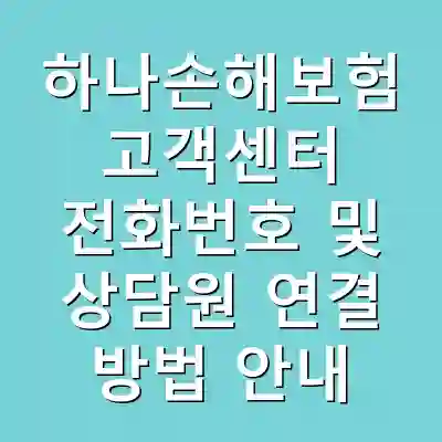 하나손해보험 고객센터 전화번호 및 상담원 연결 방법 안내