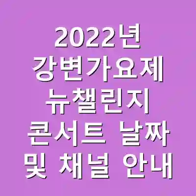 2022년 강변가요제 뉴챌린지 콘서트는 음악을 사랑하는 이들에게 특별한 경험을 선사할 것입니다. 날짜, 시간, 방송 채널에 대한 정보를 바탕으로, 여러분은 더욱 효과적으로 콘서트를 관람할 수 있을 것입니다. 이번 기회를 통해 다양한 아티스트의 공연을 직접 경험하고, 그 감동을 함께 나누어 보세요.