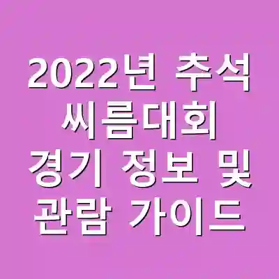 2022년 추석 씨름대회는 전통 스포츠의 매력을 느낄 수 있는 매우 특별한 행사입니다. 경기 일정과 장소, 셔틀버스 정보 등을 미리 숙지하여 더욱 알찬 관람이 되도록 준비하시기 바랍니다. 가족과 함께 즐거운 시간을 보내시길 바랍니다.