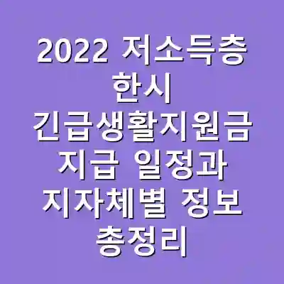 2022 저소득층 한시 긴급생활지원금은 6월 24일 시작되어 12월 31일까지 사용해야 합니다. 지원 대상은 기초생활수급자와 차상위계층이며, 카드나 지역화폐로 지급됩니다. 지자체별로 지급 방법과 일정은 다르므로 주민센터에서 정확한 정보를 확인해야 합니다.
