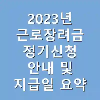 2023년 근로장려금은 저소득 근로자 및 사업자 가구를 위한 지원 제도입니다. 정기신청은 2024년 5월에 이루어지며, 소득 및 재산 기준을 충족해야 합니다. 지급액은 가구 유형에 따라 달라지며, 신청 후 3개월 이내에 지급됩니다.