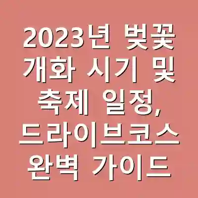 2023년 벚꽃 시즌은 아름다운 자연을 만끽하며 소중한 추억을 만들 수 있는 기회입니다. 벚꽃 개화 시기와 축제 일정, 드라이브코스를 잘 체크하여 완벽한 봄 나들이를 계획해보세요. 이 정보를 통해 여러분의 봄이 더욱 특별해지길 바랍니다.