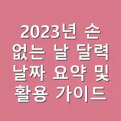 2023년 손 없는 날은 결혼과 이사 계획에 있어 중요한 날짜입니다. 손 없는 날은 악귀가 돌아다니지 않는 길한 날로 여겨지며, 이를 통해 긍정적인 결과를 기대할 수 있습니다. 따라서 이러한 날짜를 활용하여 중요한 결정을 내리는 것이 좋습니다.