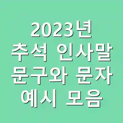 추석은 가족과 친구 간의 소통을 강화하는 중요한 기회입니다. 다양한 인사말 문구를 통해 따뜻한 마음을 전할 수 있으며, 적절한 상황에 맞는 메시지를 선택하는 것이 중요합니다. 2023년 추석에 적합한 인사말을 통해 소중한 관계를 더욱 강화하시길 바랍니다.