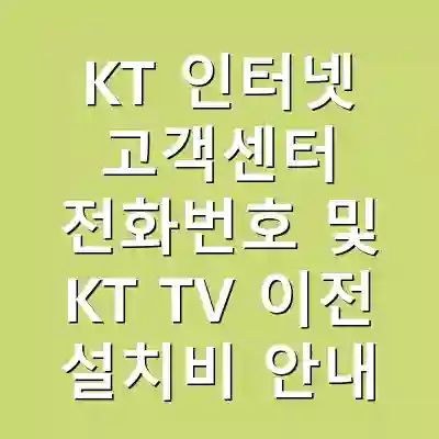 KT 인터넷 고객센터 전화번호는 고객이 서비스 관련 문제를 해결하고 정보를 얻는 데 중요한 자원입니다. 또한, KT TV의 이전 설치비용에 대한 정보는 이사를 계획하는 고객들에게 중요합니다. 본 글에서는 KT 인터넷 고객센터 전화번호와 함께 KT TV 이전 설치 비용, 그리고 관련된 팁과 주의사항을 자세히 설명합니다. 이 글을 통해 KT의 서비스 이용에 필요한 유용한 정보를 얻을 수 있습니다.